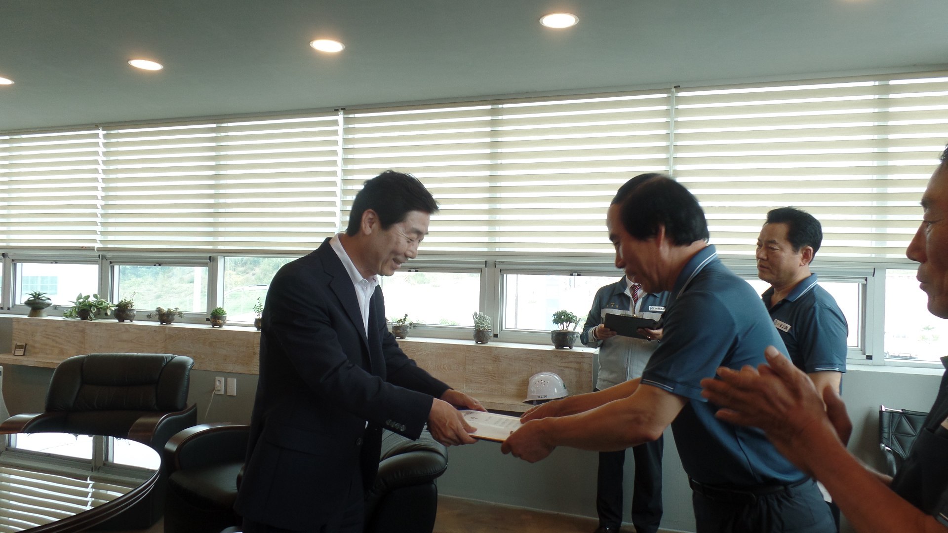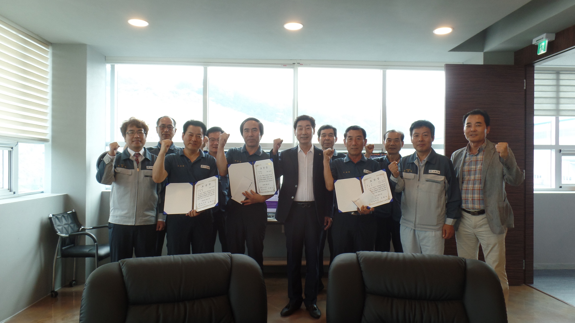 2015년 우수모범사원 및 2016년 2분기 제안자주관리 시상식 사진입니다.