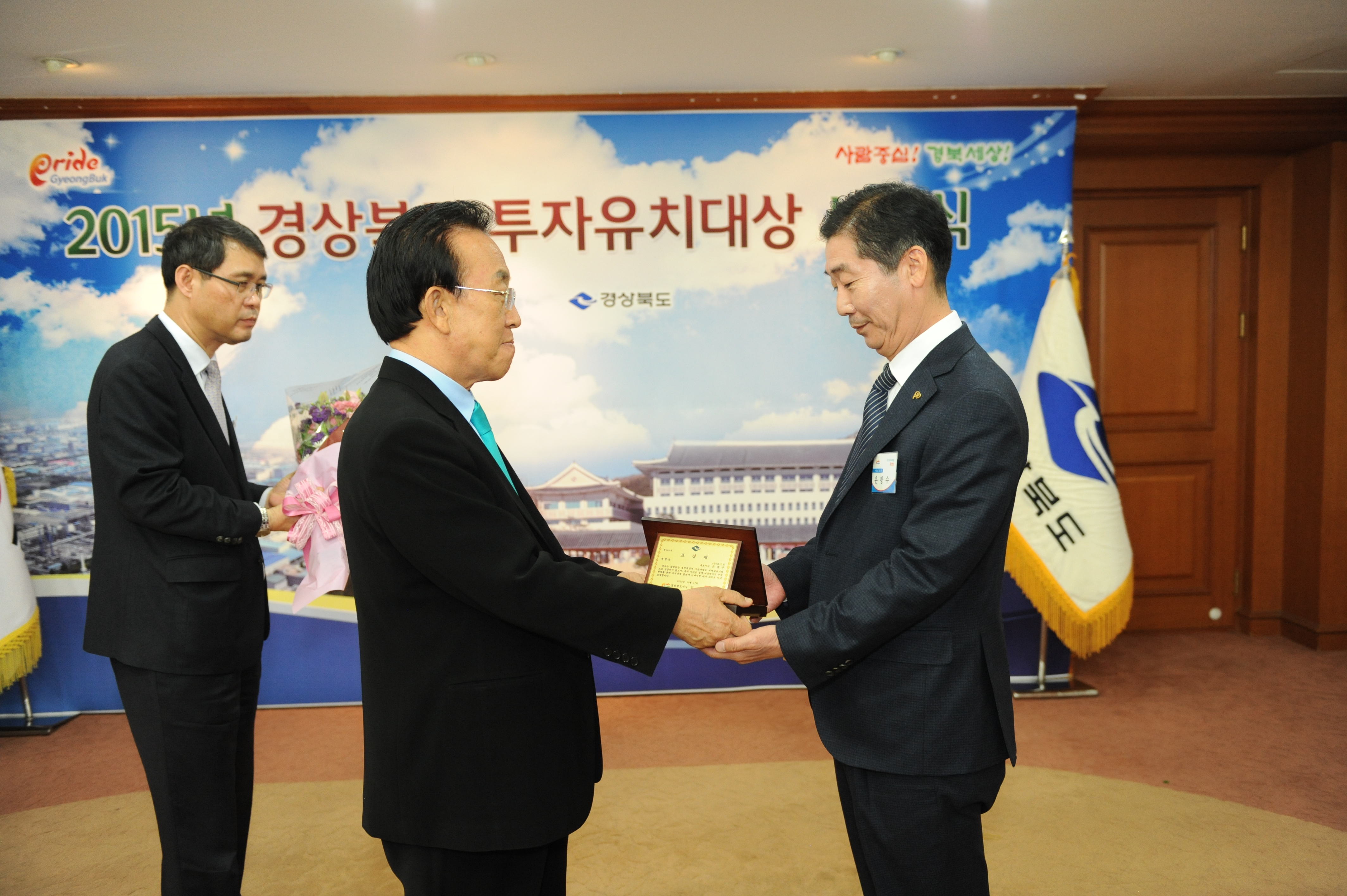 2015년도 경상북도 투자유치대상 특별상 수상 사진입니다.